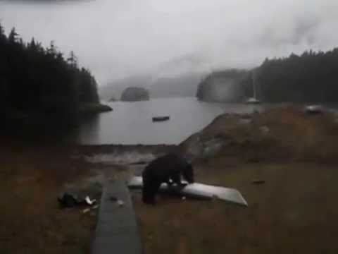 Black bear plays with a kayak 02/10/2015 02:18A close encounter with such a big predator is not for the faint of hart. The black bear plays with a kayak while the woman tries to scare him! Incredible amateur footage.Category: animalsTags: Alaska, animals, bear, black bear, kayak